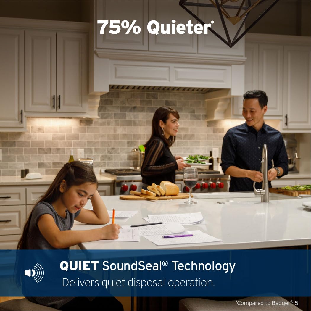 - QUIET AND COMPACT: Garbage disposer with Quiet SoundSeal technology for quieter operation than that of standard disposals; space-saving design to easily fit under sink, leaving room for other small kitchen appliances, like an instant hot water dispenser