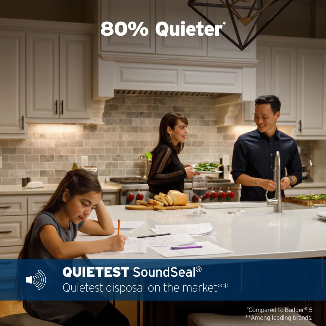 - QUIETEST AND COMPACT: Garbage disposer with Quietest SoundSeal technology for quietest disposal available; space-saving design that easily fits under sink, leaving room for other small kitchen appliances, like an instant hot water dispenser